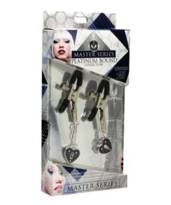 These easy to use clamps have a simple screw-down design, accented with heart shaped padlock detailing. The vinyl coated tips allow for a comfortable and secure grip while the black lacquered heart accent dangles enticingly from the end. The screws on the sides allow you to control just how much pressure your partner receives. Measurements: 4 inches in total length,... Read more