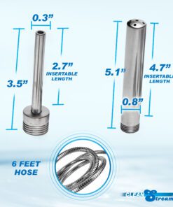 Small nozzle:Small tip: 3.5 inches overall length, 2.7 inches insertable length, 0.3 inches insertable diameter