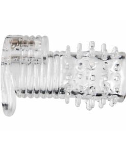 This multi function cock tool is designed for maximum partner stimulation and increased erection enhancement. The textured sheath has multiple areas of stimulation, and is stretch to fit for pleasure on any size. The stretchy retention strap fits behind the balls so it will not slip off no matter how rowdy you get. The ribbed texture pad at the base houses an interior vibrating bullet, for targeted clitoral stimulation with every thrust. Try this partner pleasing erection tool on for size!