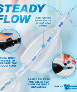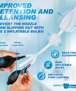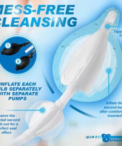 The Silicone Inflatable Double Bulb System is made of premium silicone and is designed for the enema enthusiast. The nozzle is inserted along with the first balloon. Both balloons are then inflated, creating an internal feeling of fullness and an external seal. Once the seal is created, liquid is filled inside of the rectum via a bag system or the Clean Stream In Line Accelerator. The premium silicone is ultra soft yet firm and flexible, for comfortable and body safe use. Each bulb has an integrated release valve for quick deflation and easy removal.