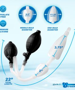 Measurements: 18 inches in total length; Large bulb: 3.5 inches in length, 3.25 inches max diameter inflated; Small bulb: 1.75 inches in length, 2 inches max diameter inflated