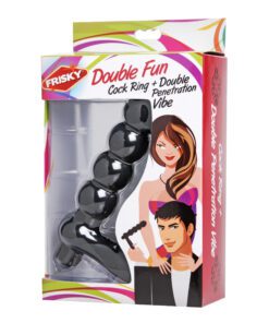 Double your pleasure and fill up their back door with this vibrating cock accessory! While you penetrate her vaginally, this beaded attachment will go to work anally, reaming her while providing thrilling vibration. The firm silicone material will stay stiff, while providing a mild stretch for maximum erection enhancement. The tip is tapered for comfortable insertion, while the beaded shaft stimulates with every stroke. The one touch button at the base controls the vibrating bullet, which can be removed for easy cleaning. Silicone is phthalate-free and easily sterilized, with a smooth matte finish and skin soft feel. Now she can get exciting double penetration action from her partner, with the Double Fun Cock Ring and DP Vibe!