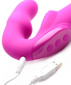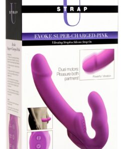 Ensure the satisfaction of both you and your lover with an elegant strapless strap-on that vibrates! This rechargeable pleasure tool features dual motors with independent control so that you can each take your pick of the 3 speeds and 5 functions of powerful internal thrumming. Both ends of this artfully designed double dildo are shaped for the ultimate in ecstasy: the bulb curves towards your G-spot to pinpoint pressure while you grind your clit against bold grooves. Meanwhile your partner will be treated to a smooth shaft with a protruding mushroom tip. It is even waterproof so that you can take your play into the shower, bath, pool, and more! Explore greater intimacy with a vibrating double-ended strapon dildo. Made of silky silicone, the Evoke is non-porous and phthalate-free. Clean with mild soap and warm water and avoid use with silicone lubricants.