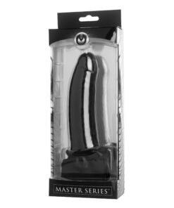 Get up close and personal with the Face Fuk from the Master Series. This stretchy, all-latex strap on is designed to fit over the mouth or chin. You or your plaything can use it as a gag, or wear it on the chin which leaves the tongue free to roam as the dildo penetrates. The rigid black dildo is nice and stiff, with just enough give to the lifelike shaft. Comfortable and sturdy, the stretchy rubber straps run behind the head and beck, keeping it in place and stretching to fit most any size and shape.