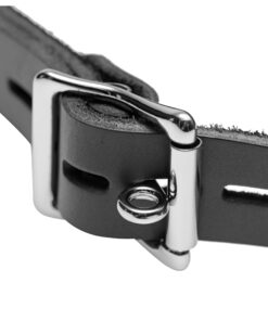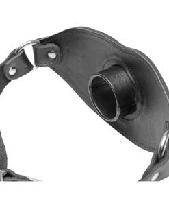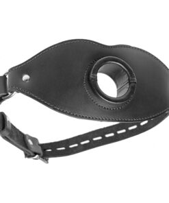 Spread their lips and keep their mouth open and awaiting your pleasure. This locking gag features a 1.5 inch diameter opening at the front, the perfect size for accepting all sorts of objects…a rolling buckle at the back locks in place easily with the addition of a standard small size lock (not included) and is adjustable to fit most any size head. The tunnel gag extends slightly into the mouth, which keeps the teeth and tongue out of the way, leaving your sub no way to resist anything you want to feed them. The gag is made of sturdy steel and vegan leather, for a high quality piece that is sure to last.
