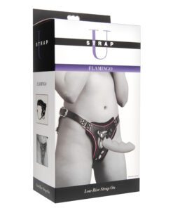 This vegan-friendly strap on harness has exciting pink accents and a low-cut designed to help draw their eye and keep their attention fixed on you. The belt is fully adjustable, with buckles at the hips and rear straps for a tight fit. The back is wide for more support, and lined with soft fabric for comfort. The front has an easy snap-in feature. Using one of the two included steel O-rings, you can add your favorite dildo, with multiple size options. The open-back design still leaves everything open for easy access.
