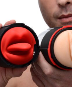 This vibrating masturbation stroker goes beyond fantasy, allowing you to penetrate a vagina and feel a tongue within! Treat your penis to 3 speeds and 4 functions of vibration from the vulva and flickering from the tongue. Just lube up and slip right in! You can even detach the tongue portion to use it separately on other parts of the body. The vulva is made of a soft material that feels ultra-realistic, with texture details within. The silicone tongue is firm but flexible. Experience vaginal and oral sex at the same time with this innovative male masturbator! Use with only water-based lubricants and clean with mild soap or toy cleaner to preserve the materials. A cap is included for easy storage.