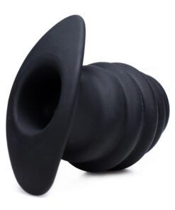 Ribbed for your anal pleasure, this hollow butt plug is available in 3 sizes so that you get the fit that is just right! The design features bold ridges that are curved for comfort while they massage your hole. Meanwhile, the tunnel in the core allows you to insert an anal-safe vibrator, a liquid of your choosing, and more! You can even give your partner a peek inside. Curved to hit the spot, this plug is great for the prostate, but will feel delightful in a female body as well. The ergonomic base allows it to sit comfortably between your cheeks for hours of wear. This unique plug is made of quality silicone, which makes it body-safe. The non-porous and phthalate-free material is not compatible with silicone lubricants, but is easy to sanitize with mild soap or toy cleaner.
