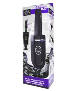 Introducing the Jaxxx Hammer 2.0, an updated design for self-pleasure or adventures with your partner. With four vibration intensities and two new rhythmic settings, you can experiment with further levels of satisfaction with this rechargeable sex machine. Three thrusting speeds allow you to get the pounding you are craving, by either mounting the machine with its swiveling suction cup base, or removing it from the base for hand-held action. Use the boost button to get even more power out of this cordless toy, and for use in the dark, turn on the optional lights and watch them disappear inside you. The phthalate-free dildo is realistically shaped, with veins for enhanced pleasure. Make your fantasies come to life with this vigorous machine from Love Botz.
