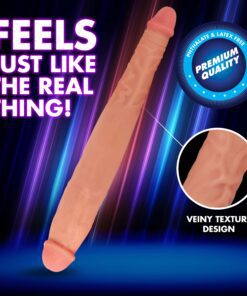 This double sided dong has 2 head sizes to please you! The ultra durable and body safe PVC is latex-and-phthalate-free. Each smooth cock head features realistic detailing and a veined shaft for more sensual stimulation. Use it with a partner or enjoy some size variety or DP action on your own. Low maintenance and easy to clean, the firm material... Read more
