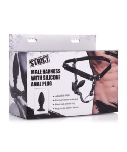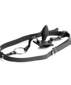 Keep your partner stuffed and ready for action! This harness combines a hard, unrelenting metal cock ring with a rippled silicone butt plug. Pull the penis and scrotum through the ring to create a rock-hard and ultra-sensitive erection. Push the tapered tip of the plug in and enjoy your partners pleasure as the ridges pass in afterwards. Tighten the straps so that they feel trapped and enjoy their desperation! The plug can also be removed to play with on its own, with a convenient suction cup base. Not compatible with silicone lubricant. Clean with mild soap and warm water.