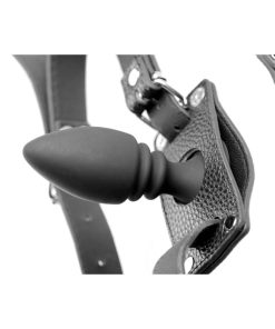 Keep your partner stuffed and ready for action! This harness combines a hard, unrelenting metal cock ring with a rippled silicone butt plug. Pull the penis and scrotum through the ring to create a rock-hard and ultra-sensitive erection. Push the tapered tip of the plug in and enjoy your partners pleasure as the ridges pass in afterwards. Tighten the straps so that they feel trapped and enjoy their desperation! The plug can also be removed to play with on its own, with a convenient suction cup base. Not compatible with silicone lubricant. Clean with mild soap and warm water.