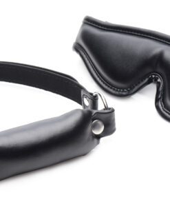 Measurements: Blindfold adjusts from 19.5 to 24.5 inches in circumference. Gag is 1.65 inches in diameter and adjusts from 18.5 to 25.5 inches in circumference