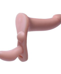 Both partners can experience the pleasure of penetration with this innovative strap on harness set. Perfect for two women or pegging, the smaller dildo slips easily and comfortably into the wearer while a small nub stimulates her clit. The larger dildo is slim and sleek for comfortable anal or vaginal penetration. The sexy and adjustable harness keeps the dildo in place for even your most vigorous thrusting action!