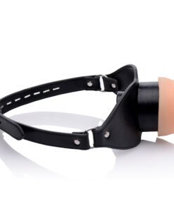 This open-mouth gag will turn your partners face into a vulva that you can thrust your shaft into! Tighten the straps around their head and secure them with the locking buckle. Push past the soft, realistic vaginal opening into your slaves eager-to-please mouth! The hard interior ring of the gag will keep their lips and teeth pried open. Enjoy humiliating your partner while they service you with this unique gag!