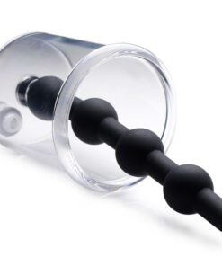 Make your A-hole swell as powerful suction increases circulation. Anal engorgement combines with penetration in this unique pumping accessory. Just stuff your booty hole with the flexible silicone beads, attach your compatible hose and pump, and begin squeezing to build pressure in the cylinder. Your anus will be sucked in, puckering out like a blooming rosebud! The 4 smooth bulbs of the anal beads will add additional stimulation as you increase the size and sensitivity of your hole, but they can also be removed from the cylinder. Both materials are non-porous, durable, and sanitize thoroughly with mild soap or toy cleaner. Avoid use with silicone lubricants.