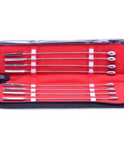 Rosebud Sounds are very unique and very effective in urethral stimulation. The bud-like tip causes a highly sensitive, centralized feeling as it slips in and out! Eight 30 cm long fine steel shafts topped with a rosebud or bullet shaped tip in various sizes from approximately 1.6mm to 13mm in diameter included in this set. The sounds are protected in a velvet-lined zipper case.