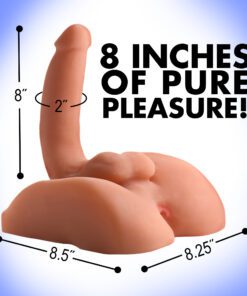 Measurements: Masturbator base is 8.25 inches wide and 8.5 inches long, dildo has 7 inches of insertable length, 2.25 inch max insertable diameter
