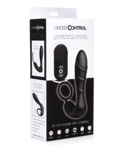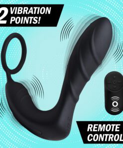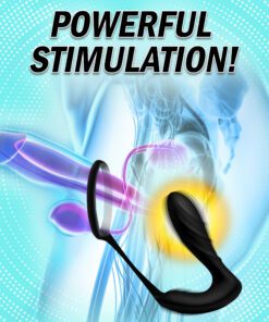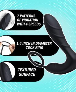 Revel in powerful vibration, inside and out with this textured prostate massager and stretchy cock ring with a perineal stimulator! Dual motors send thrumming thrills into your anus and taint while your penis is kept rock hard. Whether you appreciate the convenience during solo play, or the power during couples play, the wireless remote is an exciting feature for use at home or out on the town… with a 30 foot range! Separate buttons allow you to move back and forth between 4 speeds and 7 patterns of vibration. Let the pleasure take control with this easy-to-use, remote-controlled male pleasure tool. Made of premium silicone, it is phthalate-free for body safety, and non-porous for thorough sanitization. Clean this waterproof device after use with warm water and mild soap or toy cleaner.