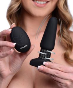 Our classic Model R Rimmer is now available in a slimmer size for those that prefer less girth! This high-tech tool has a tapered tip so that it can slide in comfortably and deliver the ultimate anal pleasure. Better than your average butt plug, this revolutionary sex toy will actually massage the opening to your hole with rotating beads and a spiral texture along its stem, providing a sensation similar to a rim job! Play with 3 speeds and 2 functions of swirling satisfaction around your sphincter. You will also be treated to 3 speeds and 5 patterns of vibration as the plug thrums inside you. An optional remote control can make playing on your own easier, but it can also provide wireless fun with a partner. Light up buttons on the remote and the plug make them easy to see in the dark. Made of premium silicone, this exciting tool is non-porous, phthalate-free, and waterproof for a body-safe experience and thorough sanitization with soap and water.