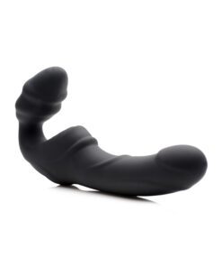 Slim Rider Ribbed Vibrating Silicone Strapless Strap On