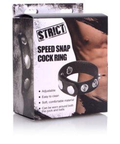 Maintain a harder, stronger, and more sensitive erection when you wrap this snap-on cock ring around your cock and balls! Restrict blood flow by tightening this comfortable and attractive strap around your package, creating a bulging hard-on that will last through your most tantalizing endeavors. Solo or with a partner, you will love the enhanced sensation of every stroke, thrust, suck, and fuck! When you are ready to ejaculate, just release the snap to quickly and effective remove the cock ring.