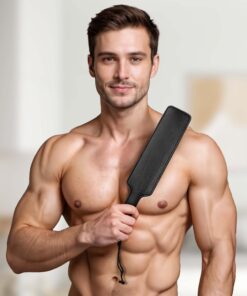 Dole out some punishment with this classically modeled black leather fraternity paddle. This paddle is made from two pieces of thick latigo leather sewn together. Paddle also has a leather loop used for hanging or to wrap around your wrist while your spanking your bad little sub.