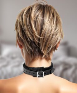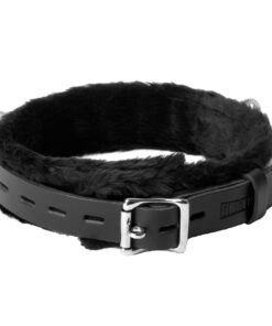 This collar is narrow for comfort and well built. It consists of two heavy duty leather straps and a thick strip of comfortable faux fur. The locking buckle on the back allows security while the three D-rings open up to all kinds of possibilities. This is yet another solidly built Strict Leather product.