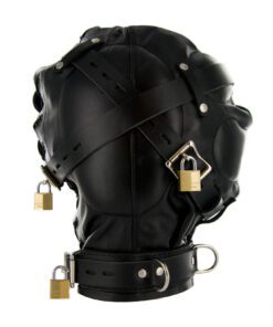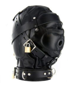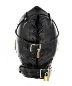 When the 3 locking leather straps are pulled tight against the padded eyes, mouth and ear areas you will feel pressure of the soft leather around your head. With your senses leaving quickly you become very submissive to your master’s demands and struggle to hear their every word. Comes in one size with laces for adjusting to fit. It features padded ear pockets, leather reinforcements for the eyes and mouth, a 0.75 inch mouth hole, and corset style back.