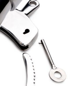 Handcuff your slaves desires with the Cock Cuff Chastity Device. This device is made from a stainless steel handcuff and has a steel tube welded to the front to make sure all pleasure is under your lock and key! The opened end allows for use 24-7. The device comes with an L-shaped bar extending from the penis lock to halfway... Read more