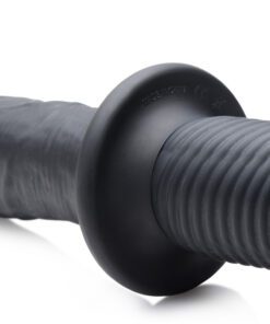 This buzzing boner thruster features a curved shaft to hit the spot, as well as a bulging head and veins to massage your tunnel! Grab hold of the textured hilt and plunge this silky-smooth, silicone dildo into your hole to experience 10 powerful vibration settings. With the push of a button at the base of the handle, cycle through 3 intensities and 7 pulsation patterns that will blow your mind as they rattle your insides. This pleasure tool is also waterproof, making it perfect for steamy shower sessions or private pool parties. Made of premium silicone, this vibrating thruster is non-porous, phthalate-free, and easy to sanitize with mild soap and warm water. Avoid use with silicone lubricants.