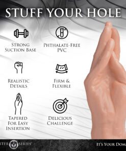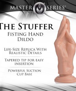 Five fingers of fun! The Stuffer presents you with the next penetrative challenge, allowing you to fist yourself, vaginally or anally. This life-size replica of a human hand features realistic details that will stretch you open and massage your hole. For your intro to fisting, this unique dildo is tapered at the tip with fingers that are grouped together for easy insertion. The flared base allows you to impale yourself entirely and ensures easy retrieval. The powerful suction cup can be mounted so that you can ride The Stuffer… hands-free! Made of a phthalate-free material, it is body-safe and compatible with silicone and water-based lubricants. Clean with a mild soap or toy cleaner after use.