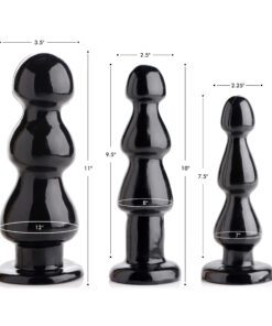 The Three Bumps for your Rump Butt Plug, is a huge black butt plug with three ridges that resemble cock heads. The butt plug has a suction cup bottom so that it can be placed on any surface for hands free pleasure. This is an excellent toy for ambitious power bottoms, and fisting enthusiasts. Each plug is designed with three heads that taper wider as you insert the plug deeper, for a unique and stimulating sensation.