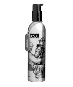 This hybrid lube combines the easy clean up and compatibility of water based lube with the lasting smoothness of silicone. The attractive metal bottle can take a beating, while the convenient pump top will cleanly dispense the perfect amount with every squeeze. Cleans up easily with soap and water, and compatible with all toys and condoms. Long lasting and slick. Comes with a Tom of Finland dog tag.