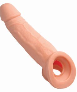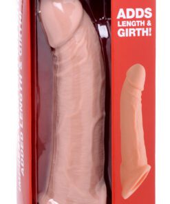 Sculpted with incredible lifelike details, this penis extension gives you more to work with when playing with a partner! Fulfill exciting fantasies when you slip your shaft into the sheath and your scrotum into the strap. Once this extension sleeve is secured, you will have more length and girth to play with. The solid tip alone adds an additional inch! This material is soft and realistic, as well as compatible with both silicone and water-based lubricants. Clean with mild soap and warm water.