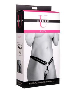 With the Unity Harness System, you can give your partner the ultimate double penetration experience. The dual ring design allows you to use your imagination as to what accessories to use . The straps snap onto the double ring to hold it in place. Comes with two sets of O-rings, metal for weight and rigidity, or silicone for a little bit of stretch and give. The comfortable and fully adjustable nylon harness easily fits up to a 60 inch waist circumference. Just cinch down the straps, either set of rings are designed to hold your toys firmly in place even when the action heats up. Use one or both rings, either as a strap on harness or as a double penetration cock ring harness for men. This versatile harness system boasts a world of penetration possibilities for the ultimate in DP strap on adventures.