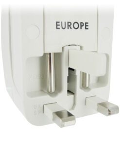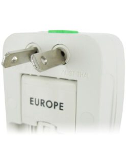 This Universal Plug Adapter and Surge Protector allows you to use your favorite plug-in toys wherever you may travel. It provides 4 different plug configurations that fit receptacles in a variety of locations around the world. Flip up the central set of prongs for European 220V outlets. Unlock the top pair of prongs for 100V – 120V outlets like those in the United States or Japan. Twist these prongs toward the center to fit Australian 240V and similar receptacles. Unlock the bottom set of prongs to accommodate 240V outlets like those used in the United Kingdom.