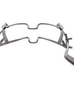 This medical device is used by dentists and oral surgeons to keep mouths open during examinations and surgeries. Made of high quality stainless steel with a matt finish, it is designed to adjust open and stay open until the catch is engaged at the side.